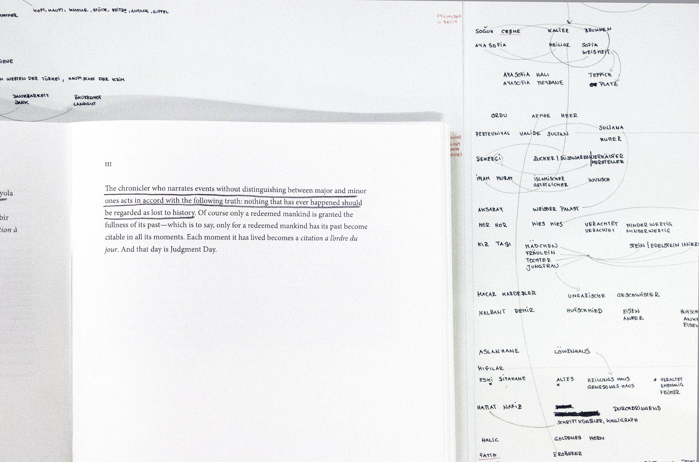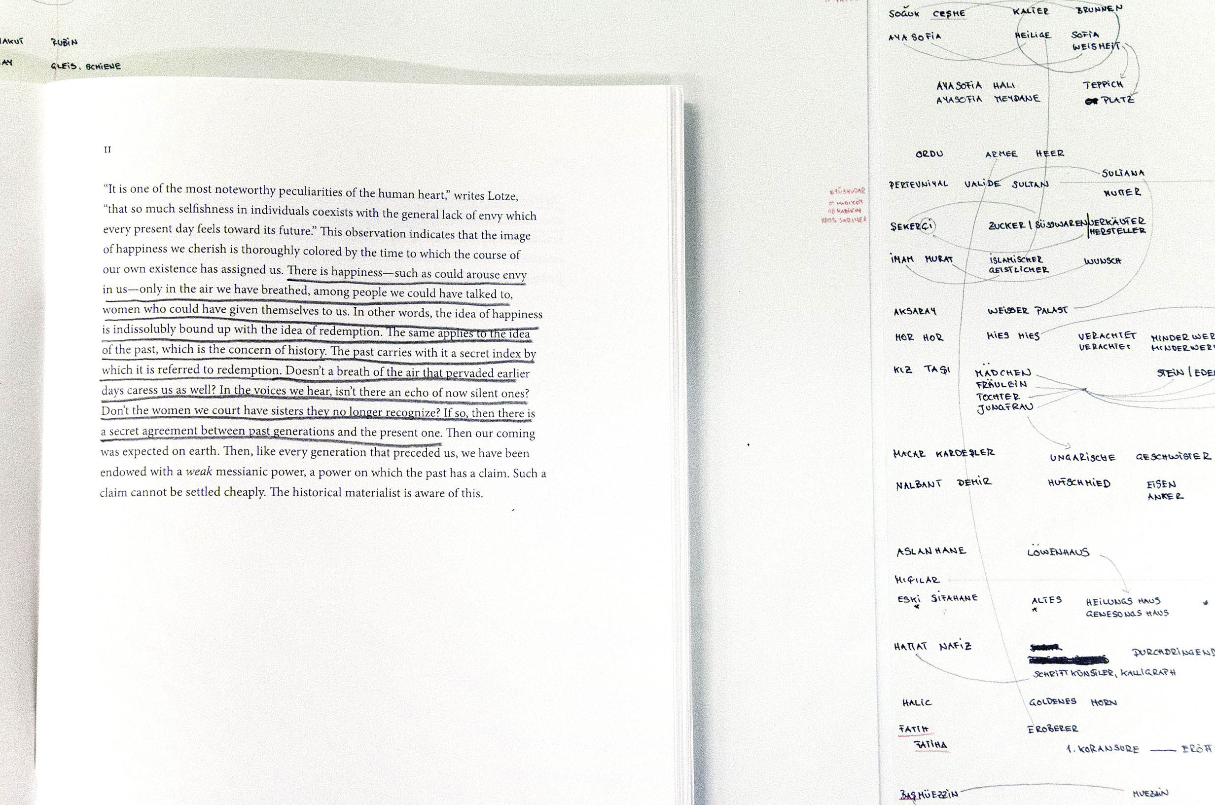 Walter Benjamin’s thought-images and his ways of writing strongly influenced Bach’s work in the recent years. Her first encounter with this material took place in 2012 in the Walter Benjamin Archive in Berlin. Since then his pictures and thoughts accompany her in making. They led her to Paris, where Benjamin himself-in his day-tried to rewrite the history of 19th century of France. Afterwards, she followed him to Moscow and retraced the steps of his Moscow Diary and finally Bach traveled with his Notes On the Concept of History to Istanbul.