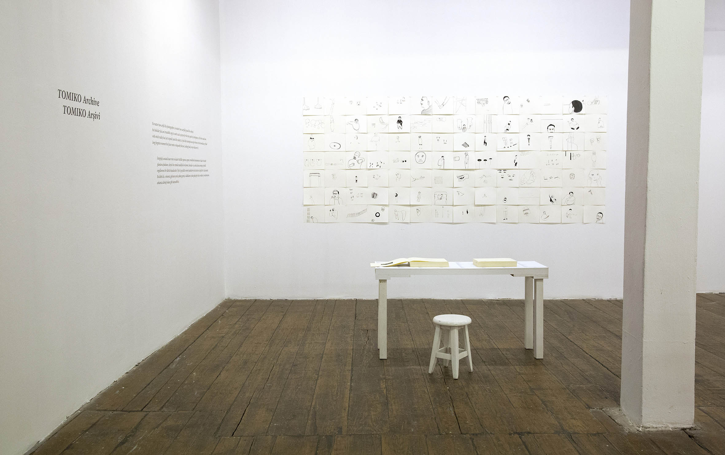 The exhibition brings together her projects “Arcades-Work”, “TOMIKO Archive” and “Past on each of its Moments be Citable”: An installation of over 400 Drawings, accompanied by the projects’ research material, such as photographs, sketchbooks, maps and artist-books giving the viewer a glimpse of the artist’s journey and process.